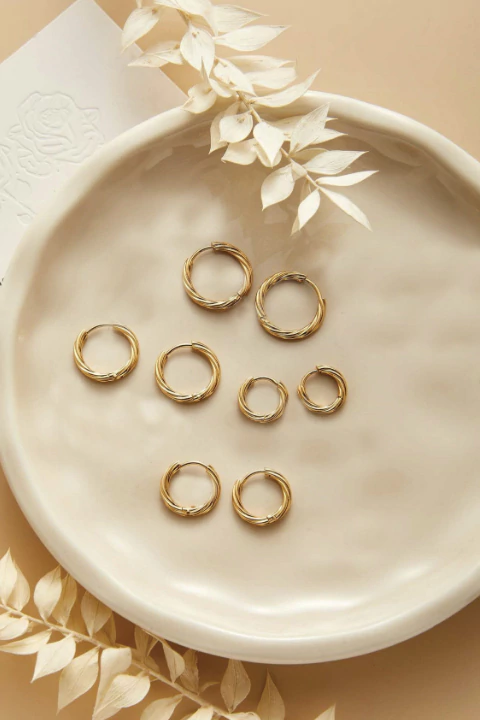 Argollas abundancia 1,5 cm de acero dorado (par)